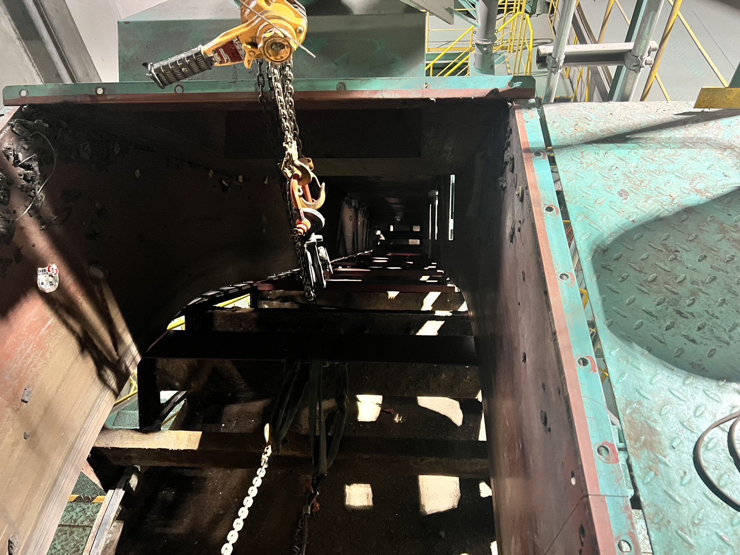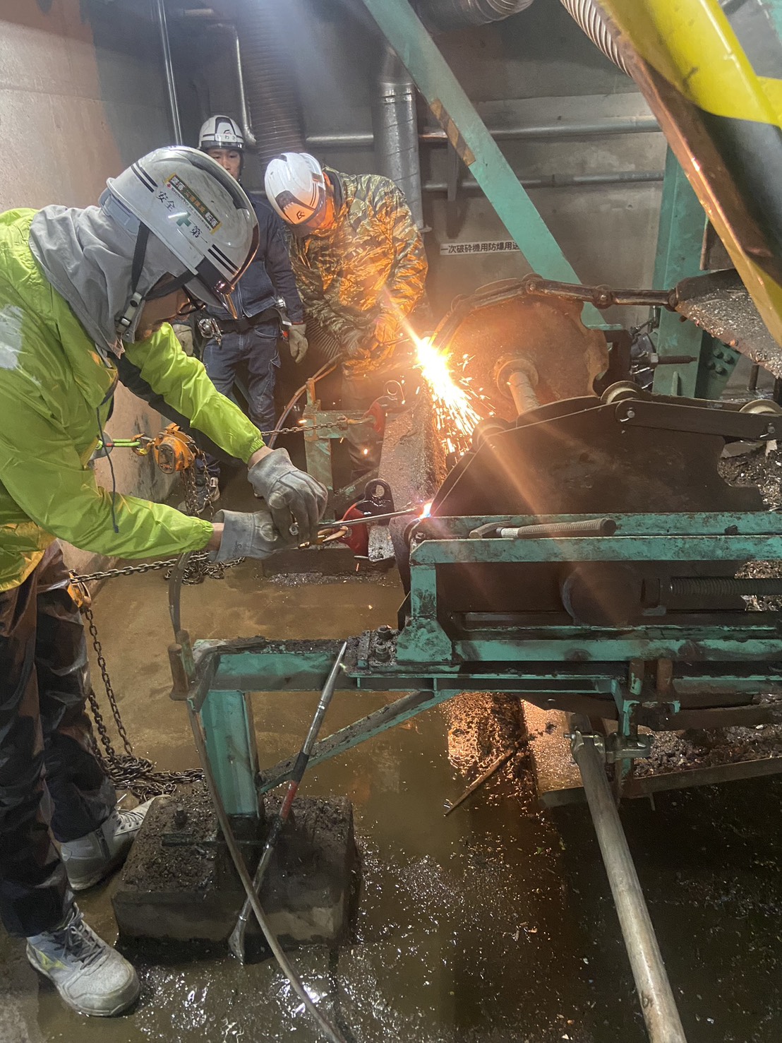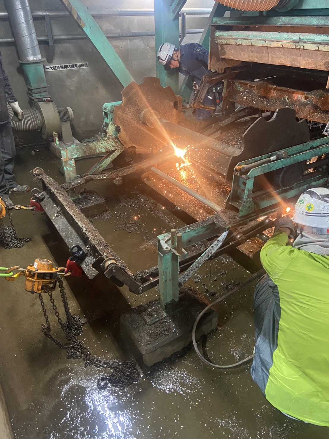 某ゴミ処理場にてチェーンコンベア更新工事を実施しました。既設設備の解体・撤去後、新規コンベアの据付を行いました。狭所かつ重量物作業のため、安全管理を徹底して施工。溶断・調整を行いながら精度の高い組立を実現しました。搬送機能の安定化と設備の長寿命化に貢献しています。