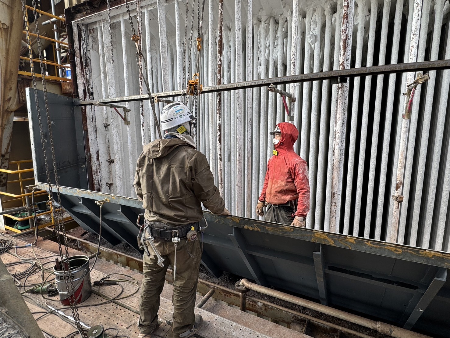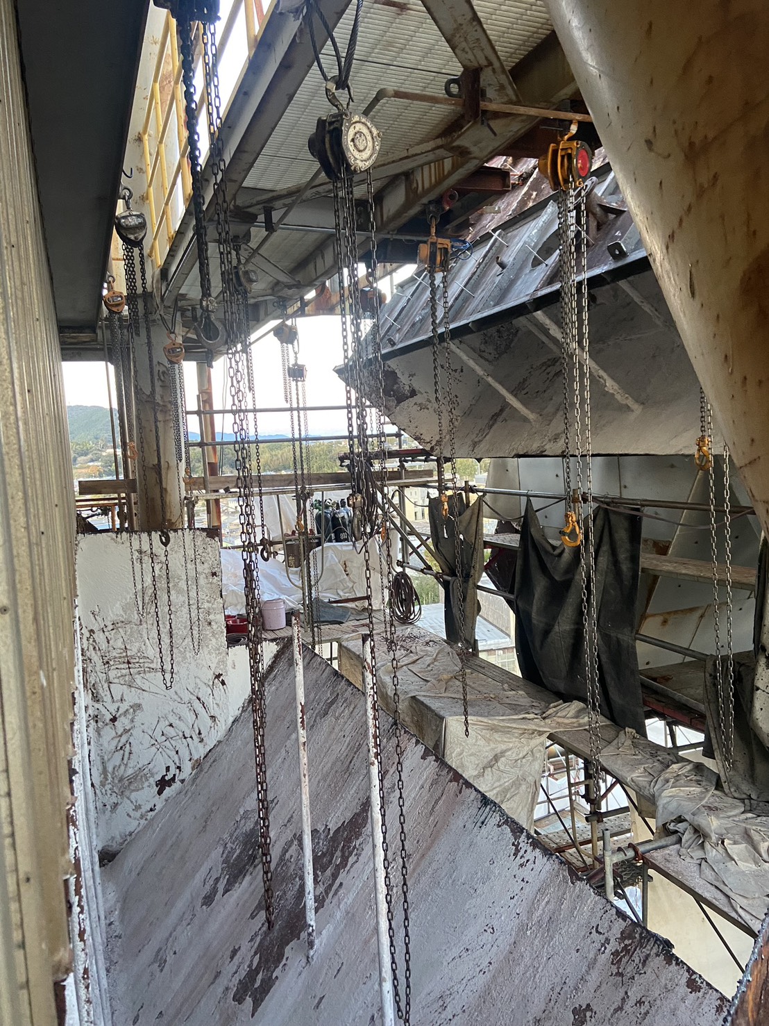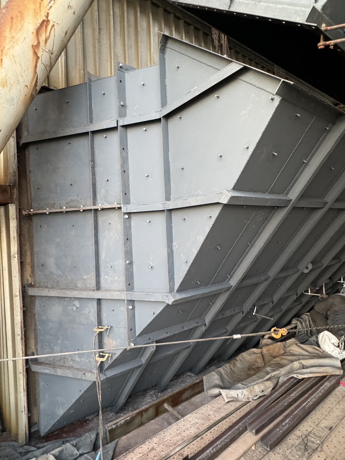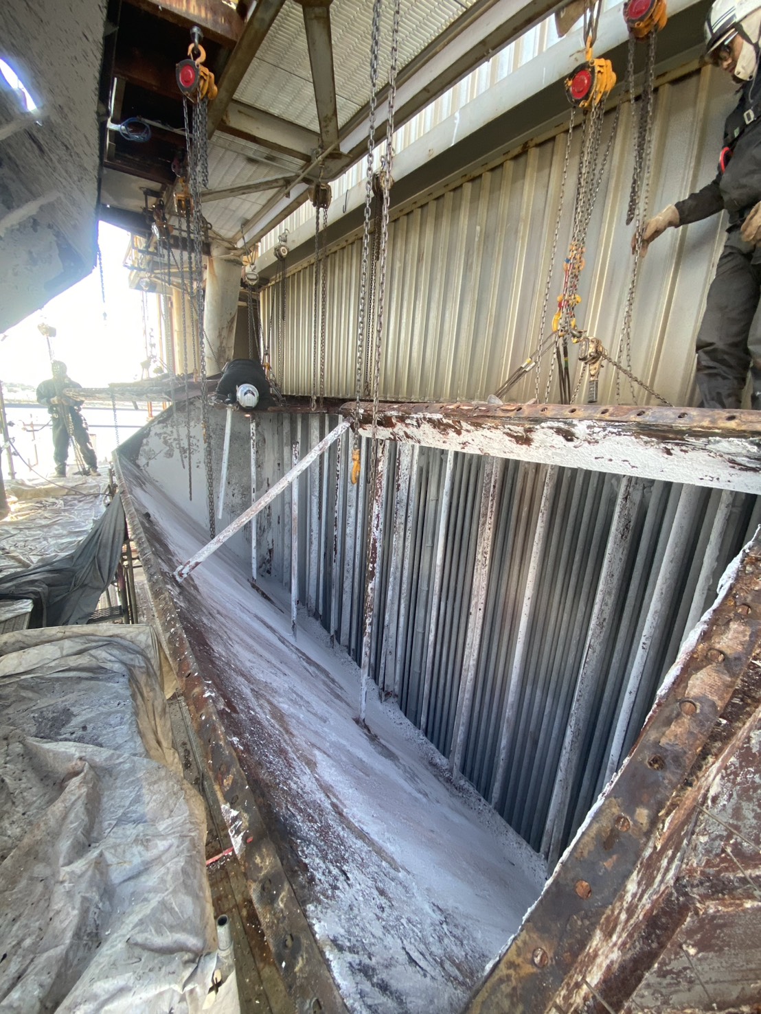 角ダクト更新工事を実施しました。老朽化した既存ダクトを撤去し、新規ダクトへ更新。狭所かつ高所での作業のため、安全対策を徹底して施工。現地状況に合わせた精度の高い据付・接続を行いました。設備の機能性・耐久性を向上させ、安定稼働に貢献しています。