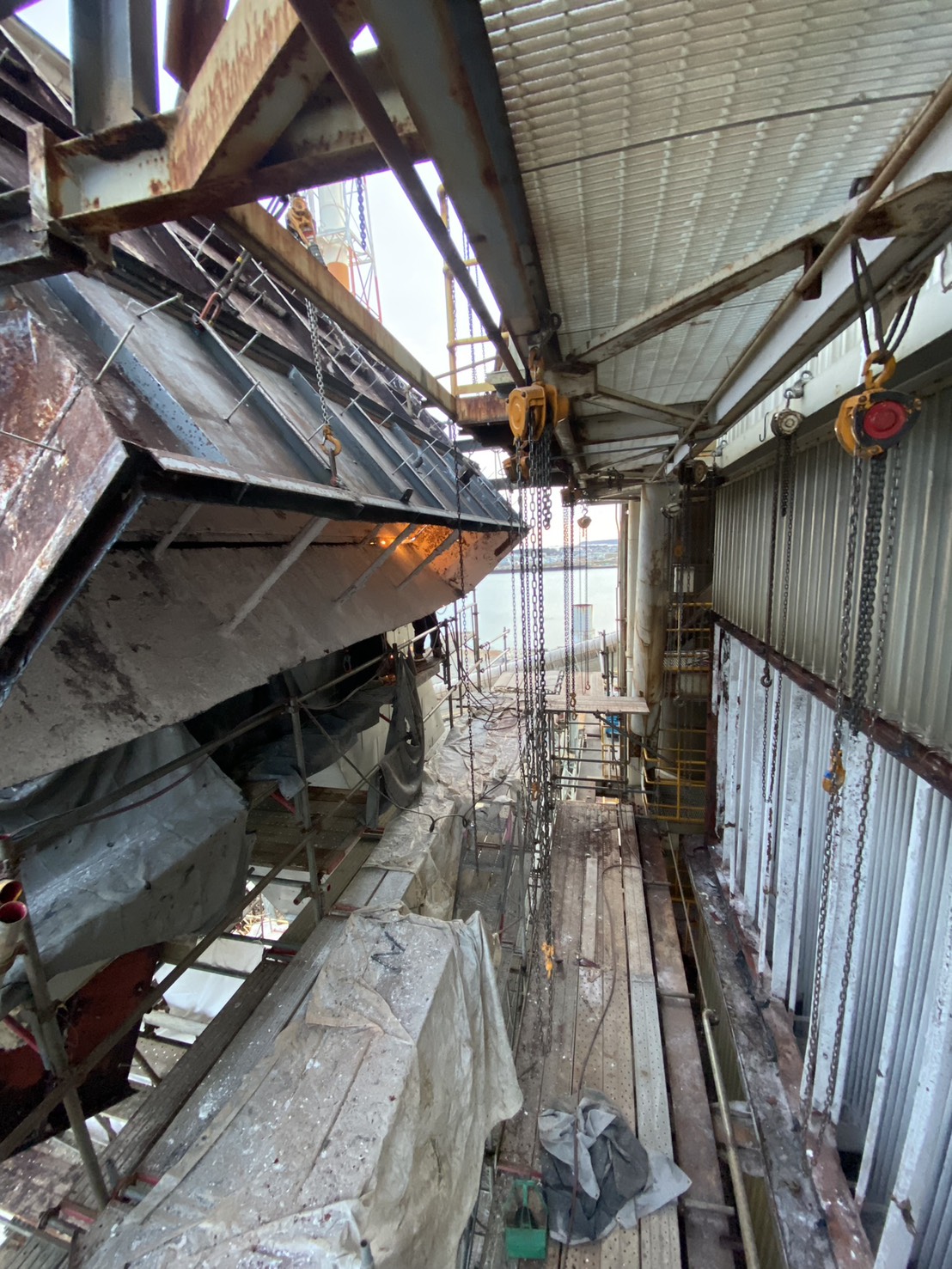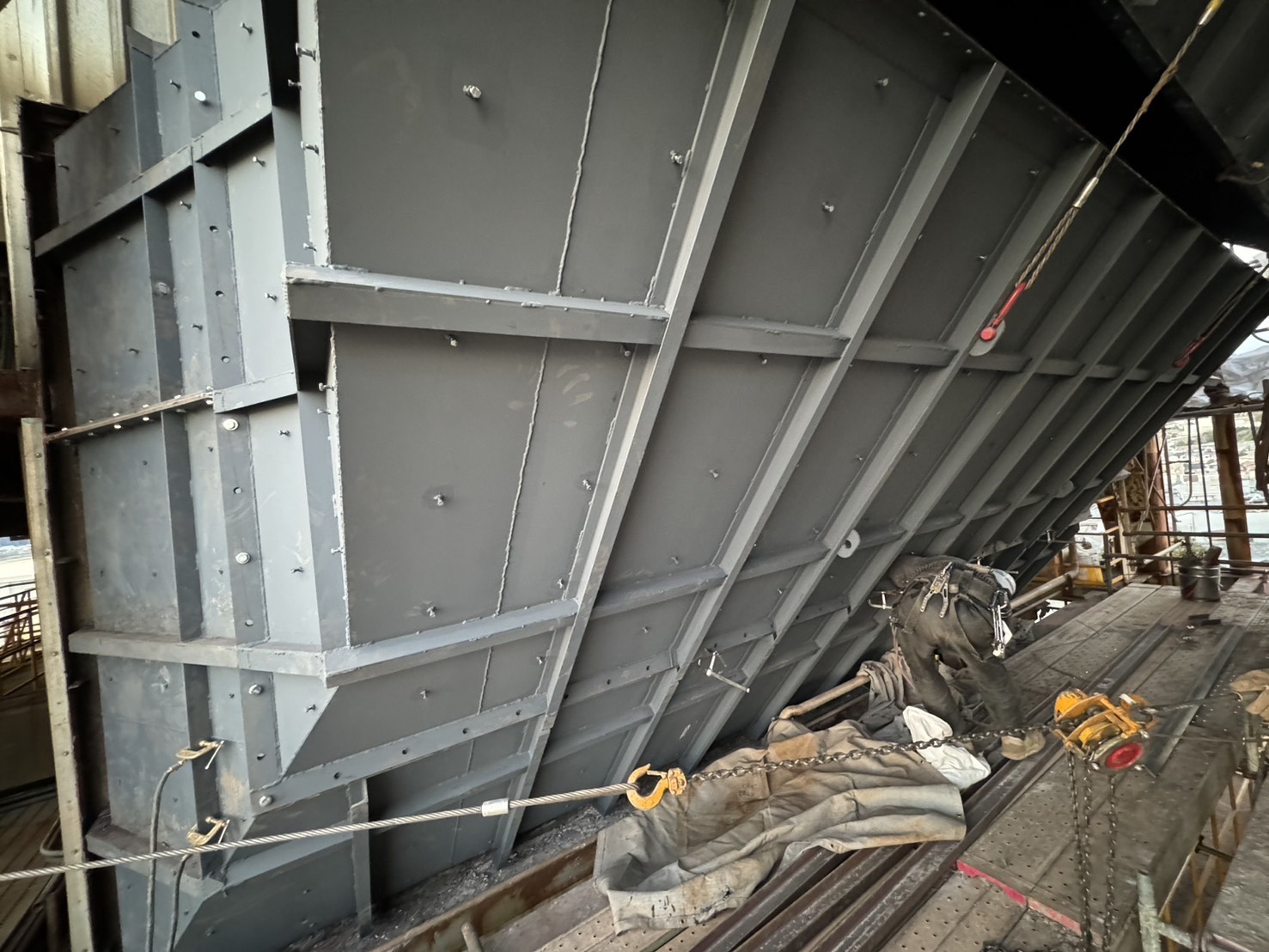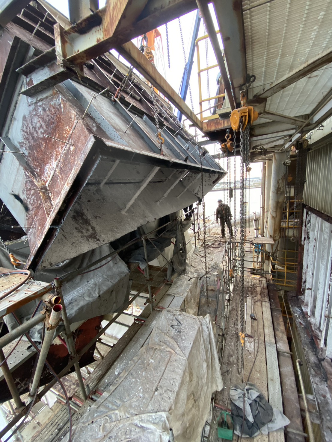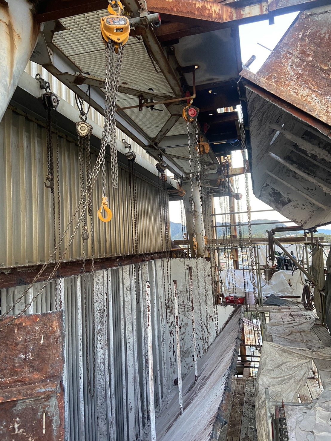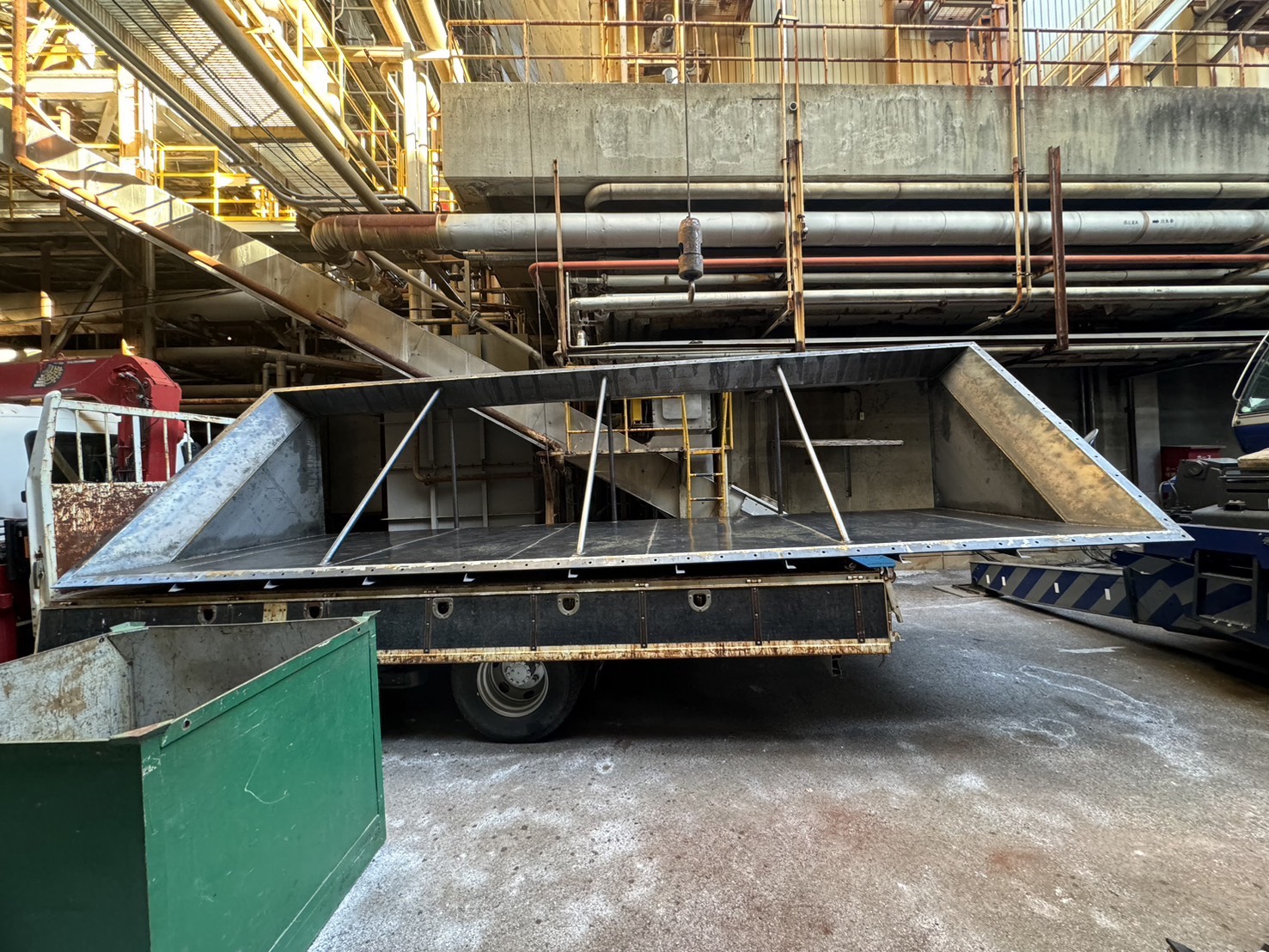 角ダクト更新工事を実施しました。老朽化した既存ダクトを撤去し、新規ダクトへ更新。狭所かつ高所での作業のため、安全対策を徹底して施工。現地状況に合わせた精度の高い据付・接続を行いました。設備の機能性・耐久性を向上させ、安定稼働に貢献しています。