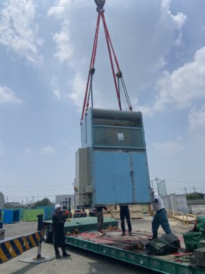 狭所かつ重量物作業のため、安全管理を徹底して施工。
